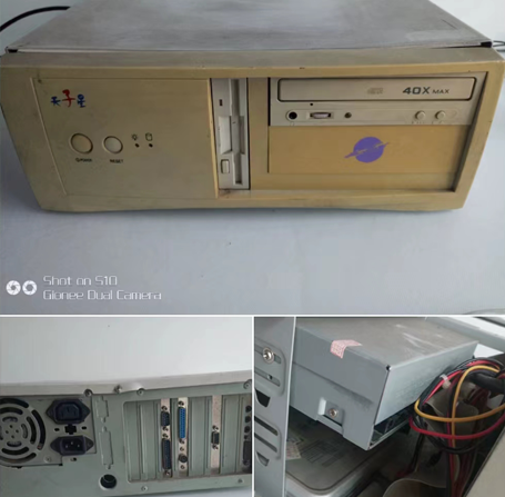 • (平臺價) ¥238 古懂電腦主機-臺實物如圖。成色古懂什么都 不缺?,F在通電開通看上去運轉正常。但是沒 有大頭顯示器了。不出亮。不知好壞。原機原 裝。